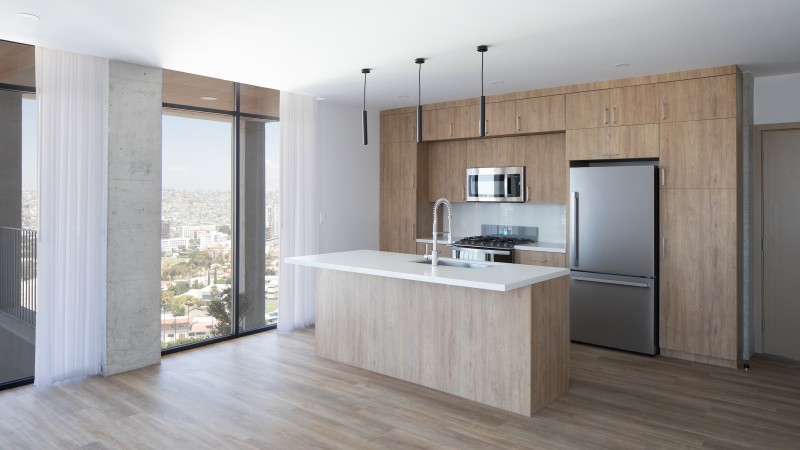 The units feature warm and spacious interiors that open to large outdoor spaces, creating an indoor and outdoor relationship not found in typical apartment buildings.