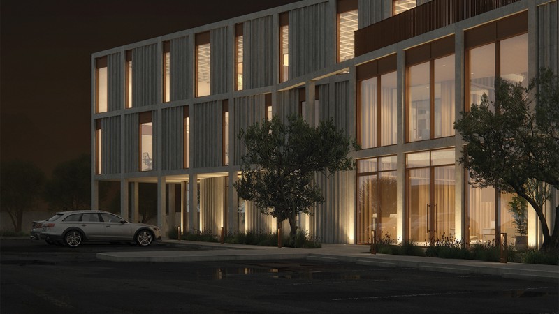 The proposed project is a combination of a commercial and office building serving as the new base of operations for Lagsa, a real estate company based in Rosarito. Our goal was to convert the existing dirt property into a more modern building worthy of it's international clients. By expanding vertically, the company's branches have enough space to work comfortably. Consequently, the property's rear was transformed into employee parking in order to accommodate the customer parking at the project's front.
